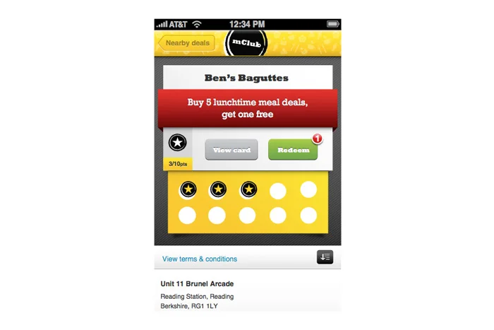 The app was part of a small scale trial to test whether Yell could leverage their position as marketeer for small and medium sized businesses, and help these businesses encourage repeat visits from customers.